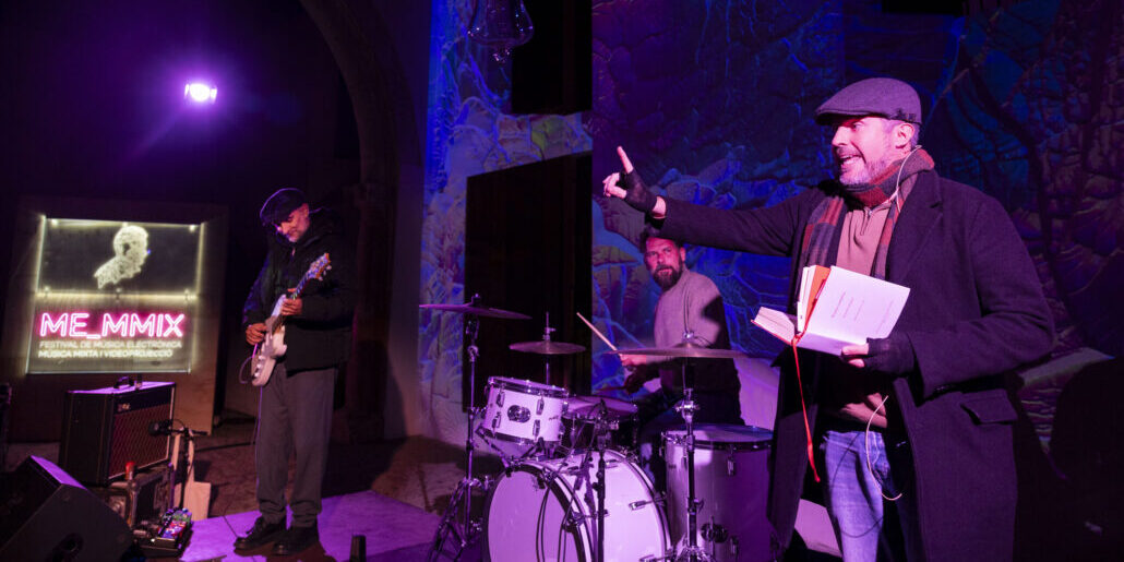 In its macrostructure, the first electroacoustic passages served as an instrumental prelude to the entry of the voice, with the torrential and intense recitation by Jaume C. Pons: a new prosodic–musical layer in itself. However, his was not the only recitation we heard in this improvisation, as offstage we heard the voice of Josep Maria Llompart himself reading two of his poems and one of his translations — multiplying the historical layers interwoven among the instrumental and electroacoustic strata. These echoes from the past were highly appropriate in the homage to the Mallorcan polymath, while shaping what the programme notes described as “a hall of mirrors on the inevitable resignification of the poem over time,” prompting “a dialogue between the original and the rereading, evoking the notion of eternal return and the transformation of the double.”
