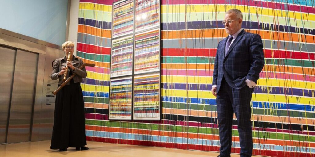 The first of these concerts featured the Swiss duo of voice, recorders, and electronics UMS’nJIP, formed by Ulrike Mayer-Spohn and Javier Hagen. Together, they guided us through an exploration of the architectural spaces of the contemporary art museum Es Baluard—a particularly pertinent approach in the first piece of their programme, Identity (2011), by Anton Svetlichny, for soprano recorders and electronics, in which resonances play a central role in revealing the acoustics of the space. This effect is heightened when the performers play while walking along a catwalk above the audience, as was the case here, further complicating our perception of the sound sources. These sources—just as in works with similar concepts, such as the bass clarinet duo 1+1=1 (2006) by Pierluigi Billone—strive for a constant con-fusion of timbres and harmonic registers marked by piercing flautando whispers that seem to evoke the snowy landscapes of Svetlichny’s native Russia, in contrast with a deeper and more threatening electronic layer which, considering the title of the score and the current state of affairs in Ukraine, feels like a premonition of the present.