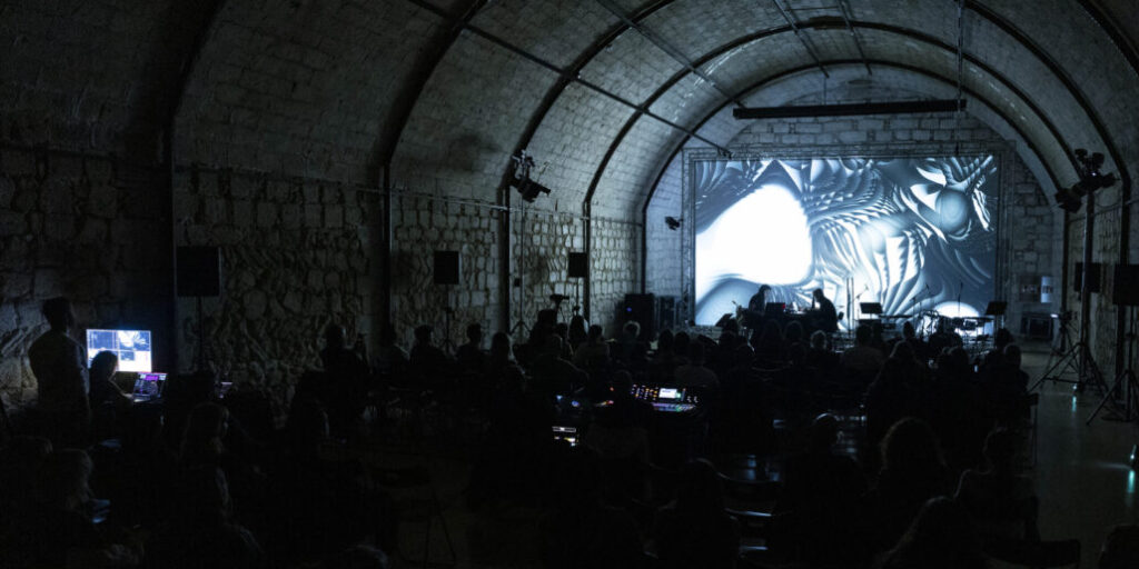 Later in the afternoon, we listened to Prima Materia, an interdisciplinary performance by José Venditti (saxophone and electronics) and Marta Verde (visuals), presented in the cistern of Es Baluard. Venditti seemed intent on putting its walls to the test, given the dynamic extremes to which he pushed the most saturated and piercing electronic passages. As the day before in EMEA’s electroacoustic session, the connections between music and image were extremely direct, as in the Escher-like constructions that fused both languages, though accompanied by that sense of repetition and material exhaustion so often present in this type of musical session.