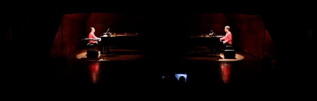 El dúo ALTER-FACE recibió con ilusión el encargo del ME_MMIX de confeccionar un programa formado por obras de creadores actuales de las Islas Baleares. En esta edición del Festival ofrecemos una recopilación de obras compuestas específicamente para el dúo formado por los pianistas Tomeu Moll-Mas y Albert Díaz, tres de las cuales son estrenos absolutos. El programa se ha construido a través de un proceso de diálogo con compositores del archipiélago, resultando en un conjunto de cuatro obras contrastantes que exploran diversas dimensiones y recursos de la creación contemporánea para piano.